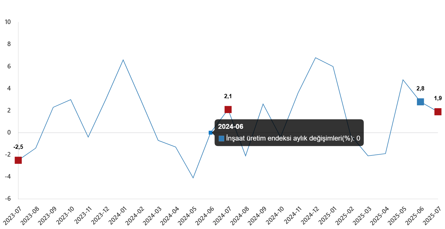 İnşaat üretim endeksi aylık değişimleri(%), Temmuz 2025