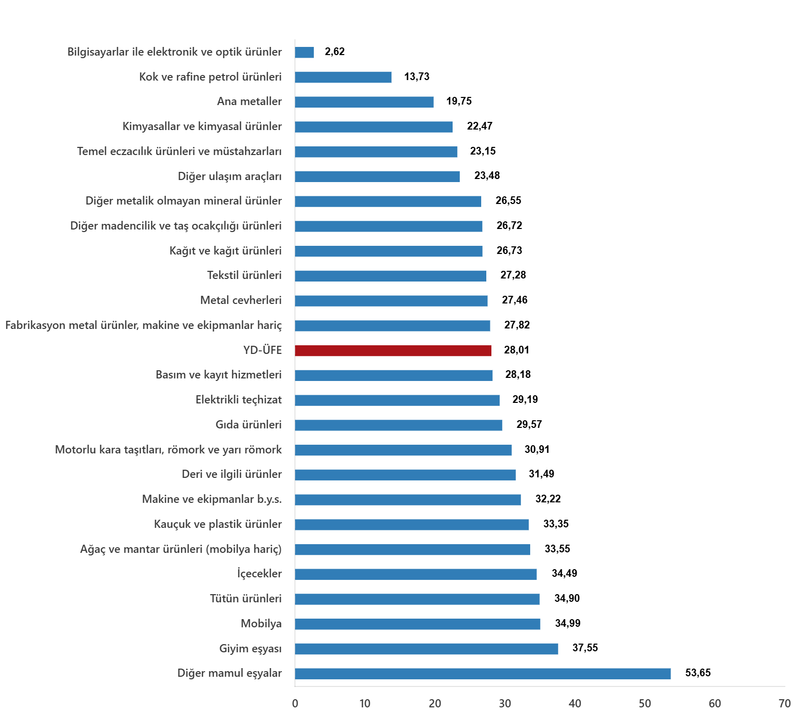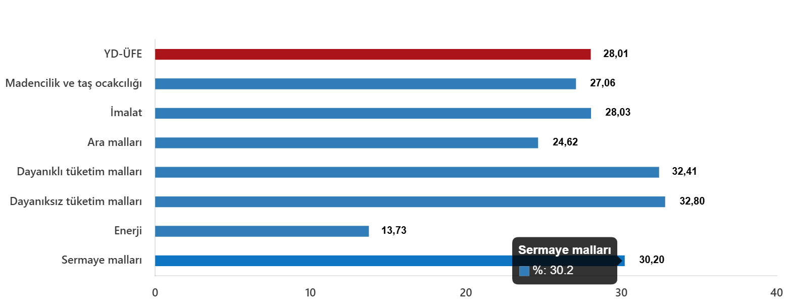 YD-ÜFE imalat ürünlerinde yıllık %28,03 arttı