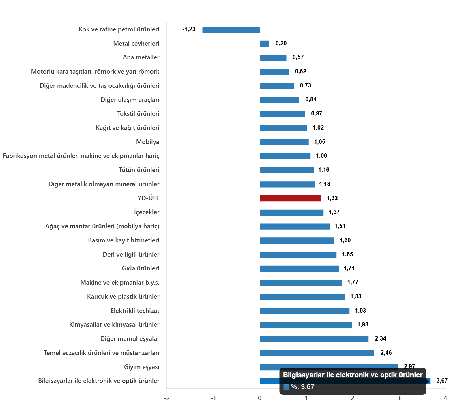 YD-ÜFE imalat ürünlerinde aylık %1,34 arttı